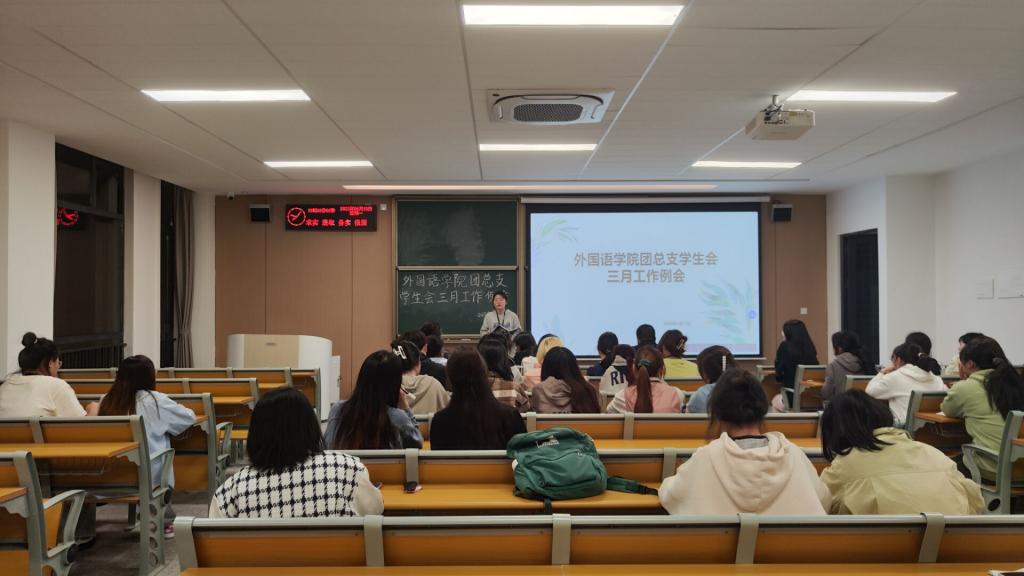 (通讯员 刘钰)4月10日晚七点,外国语学院团总支学生例会于A-308教室召开,辅导员钟燚和全体学生会成员参加。