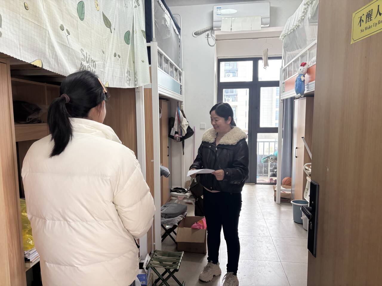 班会后老师们逐一走访各宿舍,细致查看卫生整洁度、物品摆放规范性,重点排查违规电器、用电安全等潜在风险。对宿舍检查中发现的问题,老师们现场提出具体整改建议、明确整改时限,督促同学们及时整改,确保宿舍环境安全有序。