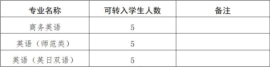 二、接收转入专业及人数计划表