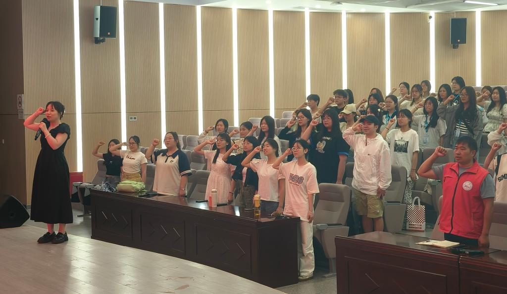 会议伊始,yl7703永利集团驻村第一书记冉继强介绍我院驻五峰土家族自治县渔洋关镇石柱山村工作队的基本情况。接着青工部部长严珮榕上台发言,向我们介绍了结对帮扶活动流程及注意事项。外国语学院党总支书记王玲玲鼓励大家积极参与志愿服务活动,弘扬志愿服务精神。最后,志愿服务队队长许静婷带领全体志愿者宣誓。