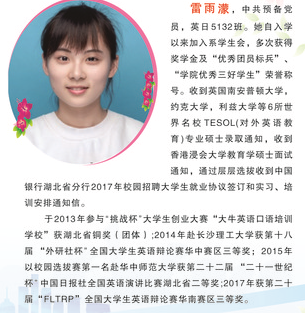 2017年第二届十佳大学生 雷雨濛 中共党员 外国语系英日5132班