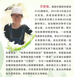 2016年第一届十佳大学生 万思佳 中共党员 外国语系英师5161班