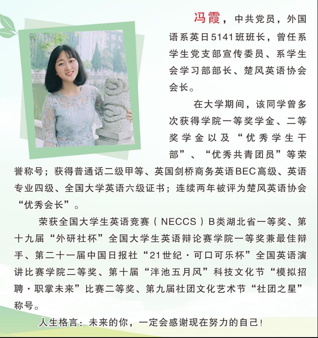 2018年第三届十佳大学生 冯霞 中共党员 外国语系英日5141班