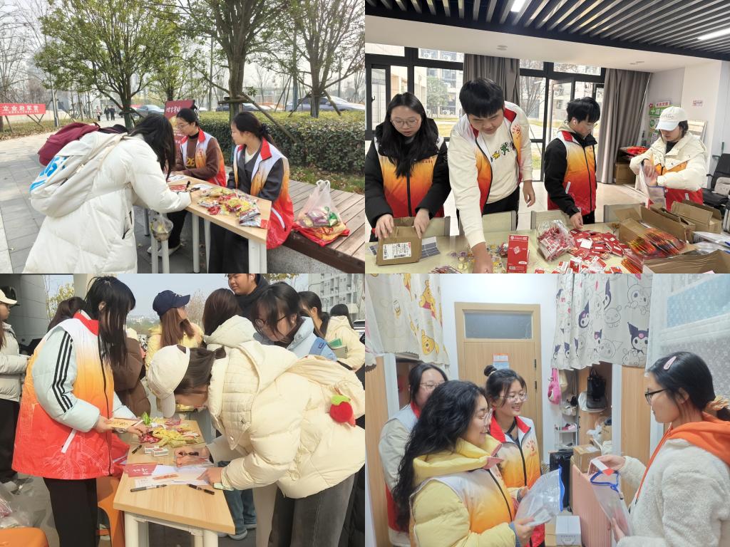 活动期间,党员志愿服务队在B、D宿舍楼下设置“赠言寄暖,助力研途”服务点,将“党建+暖心祝福”融入细节。活动吸引过往同学纷纷驻足,提笔在祝福卡上为考研学子写下真挚鼓励。这些承载真情的手写卡片经志愿者整理后,被悉心放入“考研暖心礼包”,通过党员志愿者将组织的温暖与同窗的祝愿逐一送达考研学子手中。