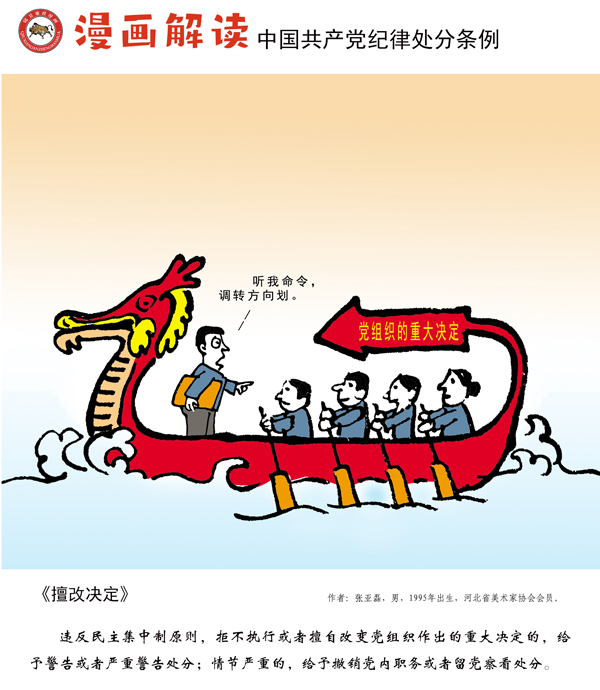 编者按:纪律是我们党的生命线,加强纪律建设是全面从严治党的治本之策。为深入贯彻落实十九届中央纪委四次全会关于加强党纪国法教育的部署要求,强化党规党纪的学习宣传、贯彻执行,使铁的纪律真正转化为党员干部的日常习惯和自觉遵循,中央纪委国家监委网站联合河北省纪委监委,以漫画形式对《中国共产党纪律处分条例》进行解读,陆续连载刊发,敬请关注。