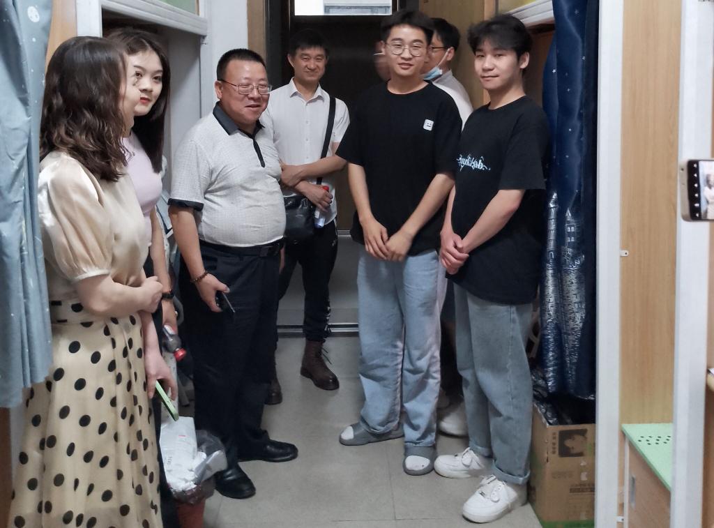 每走进一间宿舍,李刚英部长都亲切询问同学们的毕业去向以及未来打算,了解他们的生活情况,关切地给即将离别的毕业生带去温暖,鼓励大家在未来要乘风破浪、勇往直前,保持进取心态,并祝愿大家前程似锦,事业有成,嘱咐毕业生常回家看看。信息与机电工程学院院长付兵与学生亲切交流,解决学生困难,鼓励毕业生们要继续努力,积极投身民族复兴伟大事业。人文与传媒学院党总支书记李成军走进毕业生宿舍,与毕业生们逐一交谈,鼓励大家新的起点、新的岗位上敢闯敢创,再创佳绩。管理学院党总支书记胡沿林倾听学生心声,对顺利考研、就业的同学们表示祝贺,希望大家能提高安全防范意识,注意人身安全、财产安全,确保平安、顺利离校。