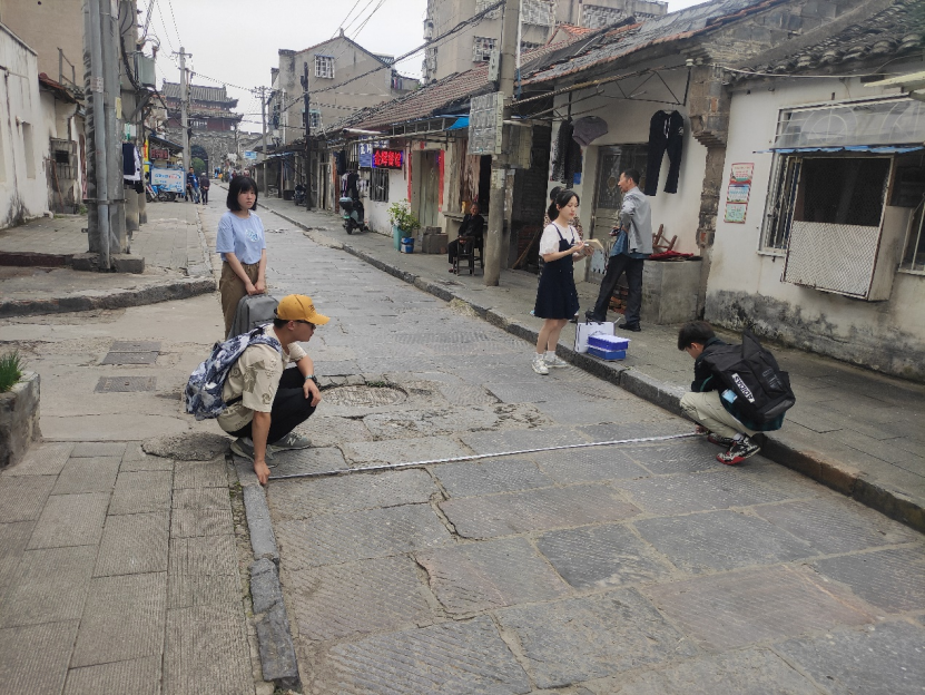 近日,建筑与设计学院教师田从祥、郑聪带领第十四届“挑战杯”大学生课外学术科技作品竞赛参赛团队(建筑学古城社区服务工作坊)赴荆州古城历史街区三义街开展调研活动。