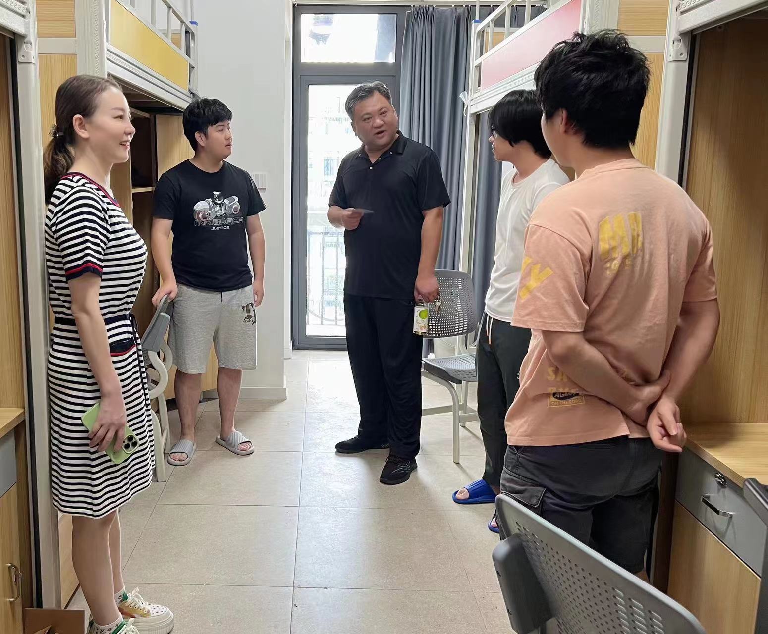 本网讯 (通讯员 成观雄)为了解暑期留校学生的学习、思想和生活情况,充分听取同学们的意见和建议,8月8日上午,yl7703永利集团党委副书记李则俊带队深入学生宿舍看望慰问暑期留校学生,为备战考公考研的同学们送去鼓励和祝福。学生工作部负责人、院(系)书记、辅导员老师陪同看望慰问。