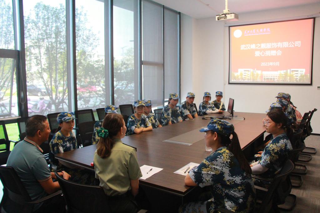 9月10日上午,学生工作部在图书馆104会议室组织开展了爱心捐助活动。武汉峰之靓服饰有限公司负责人夏至以实际行动奉献一份爱心,贡献一份力量。活动由党委学生工作部部长李刚英主持。