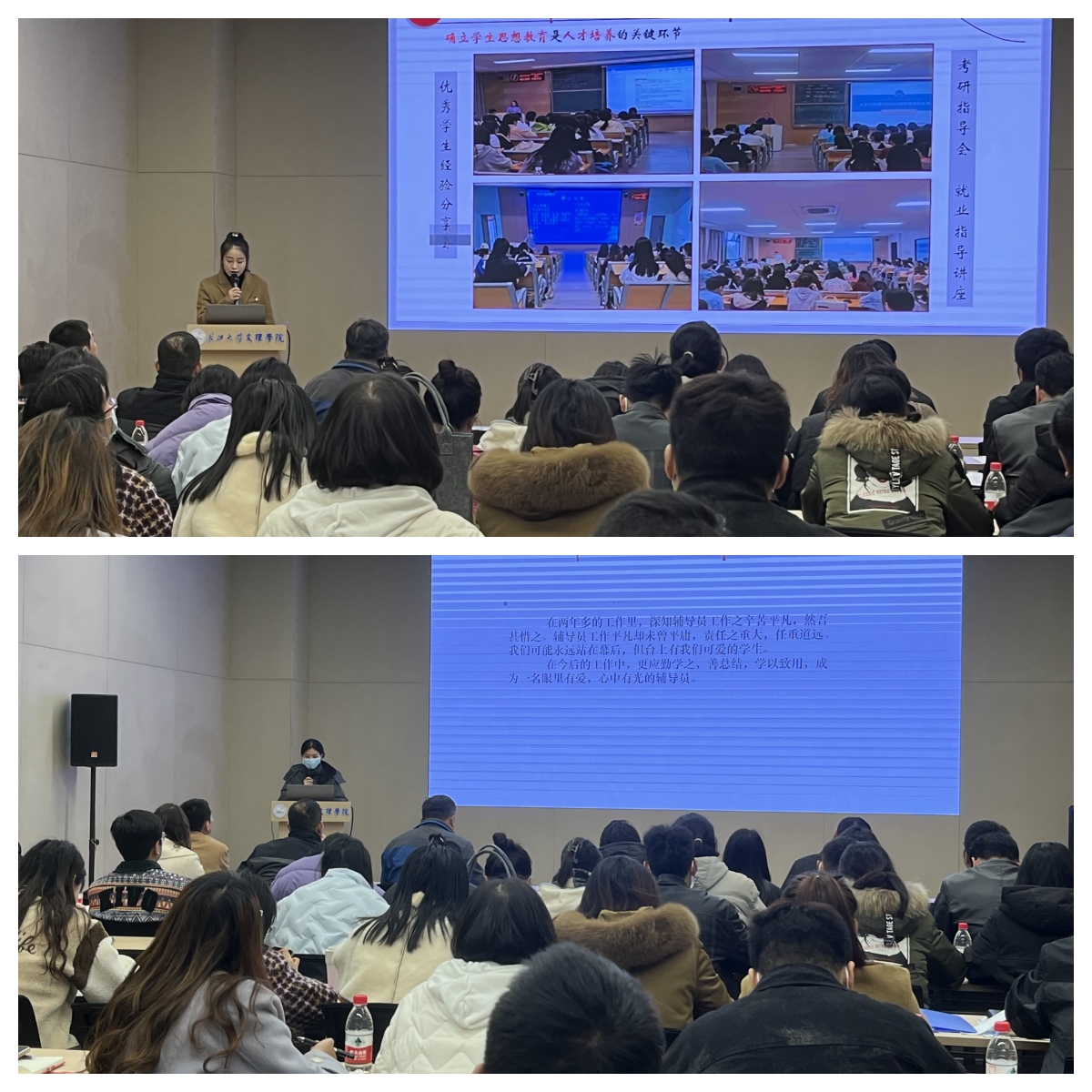 首先,人文与传媒学院党总支副书记雷昕做了《打造实践育人平台 服务学生成长成才》的特色工作分享报告;教育与心理学院辅导员李晓怡结合工作实际从“日常工作、班级班委管理、学生教育管理、自我提升”四个方面进行自我分享。