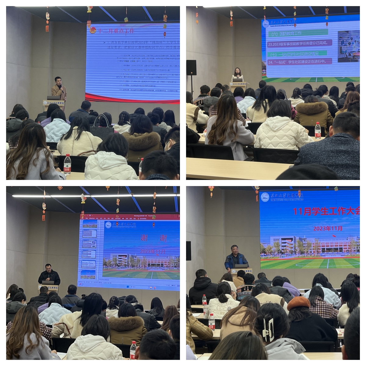 接着,陈海波将11月份团委已开展工作用数据和图表进行详细的展示,并对接下来的常规工作和重点工作进行了明确部署。李刚英汇报了学生工作部11月份已开展的工作,并部署了近期的工作安排。沈爱龙通报了学院近期的诈骗事件,并强调了提高学生反诈意识的重要性。