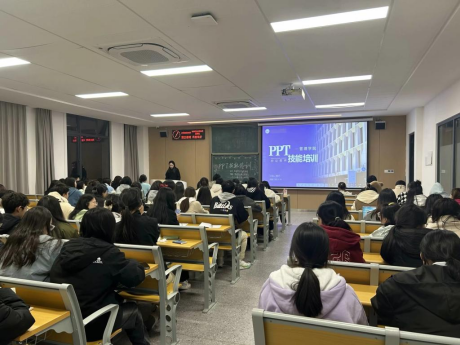 培训开始,主讲人周铃子指出PPT在日常学习工作中的重要性,接着从制作PPT模板、构建内容框架、内容排版设计、美化以及预览四个方面出发,结合亲身经历,提供制作PPT直接有效的方法及意见。同时,也强调了对PPT进行美化这一步骤的必要性。培训会结尾,周铃子向同学们分享了自己的经验和技巧,并为同学们提供了关于PPT制作的实用网站。