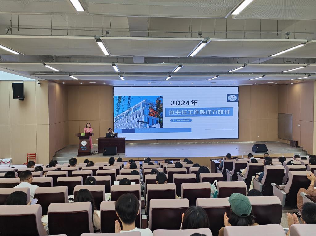 李刚英老师以“班主任工作胜任力研讨”为题,首先从国家政策层面解读了班主任工作的重要性,并深入分析了班主任工作的现状。其次,从学校政策层面,围绕工作实际,对班主任工作职责与要求的“12个1工程”进行了详细解读。最后,从个人的工作感悟出发,对全校班主任、辅导员工作提出了要求,希望全体学生工作队伍严格落实工作职责,助力我校人才高质量发展。