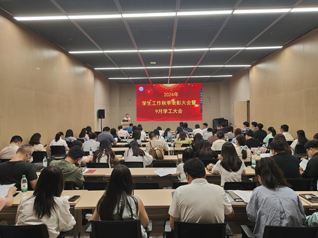 9月26日下午,我校在图书馆103报告厅召开学生工作秋季表彰大会暨9月学工大会。校领导学院党委副书记李则俊出席会议,党委保卫部负责人、各教学单位党总支书记、副书记、辅导员,党委学生工作部、学生就业指导处、团委全体成员参加会议。会议由党委学生工作部部长李刚英主持。