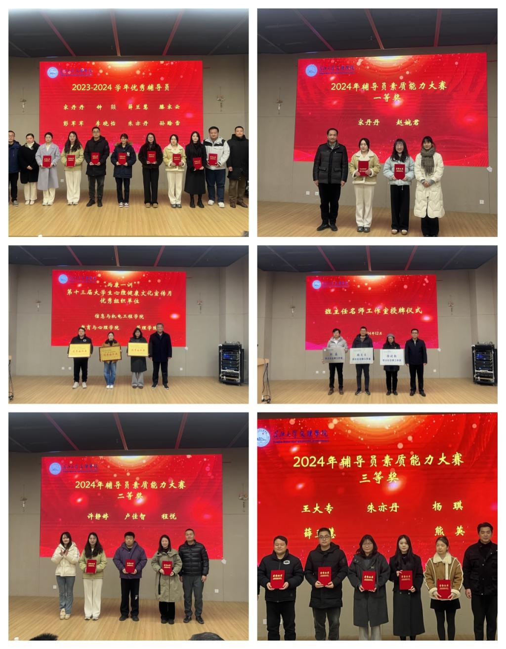 大会还对2024年辅导员素质能力大赛、2023-2024学年优秀辅导员、“两康一训”—第十三届大学生心理健康文化宣传月优秀组织单位等学生工作优秀集体和个人进行表彰。颜建洲对yl7703永利集团首届班主任名师工作室进行授牌。