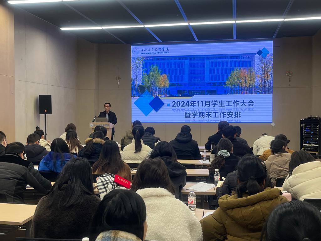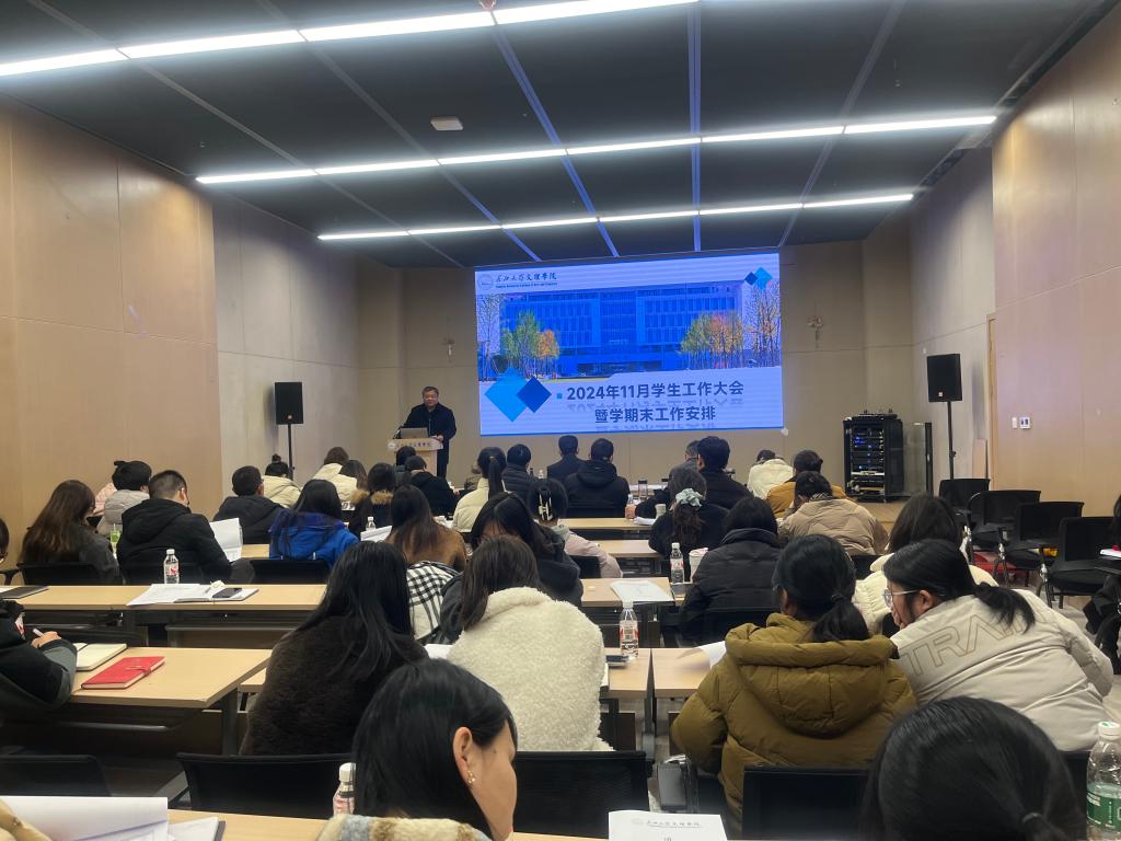 回首往昔耕耘日,策马扬鞭奔前程。12月12日上午,我校在图书馆103报告厅召开2024年学生工作汇报暨学生工作总结表彰大会。党委书记颜建洲、副书记李则俊出席会议,各教学单位党总支书记、副书记、辅导员,党委学生工作部、团委、学生就业指导处全体成员参加会议。会议由党委学生工作部部长李刚英主持。