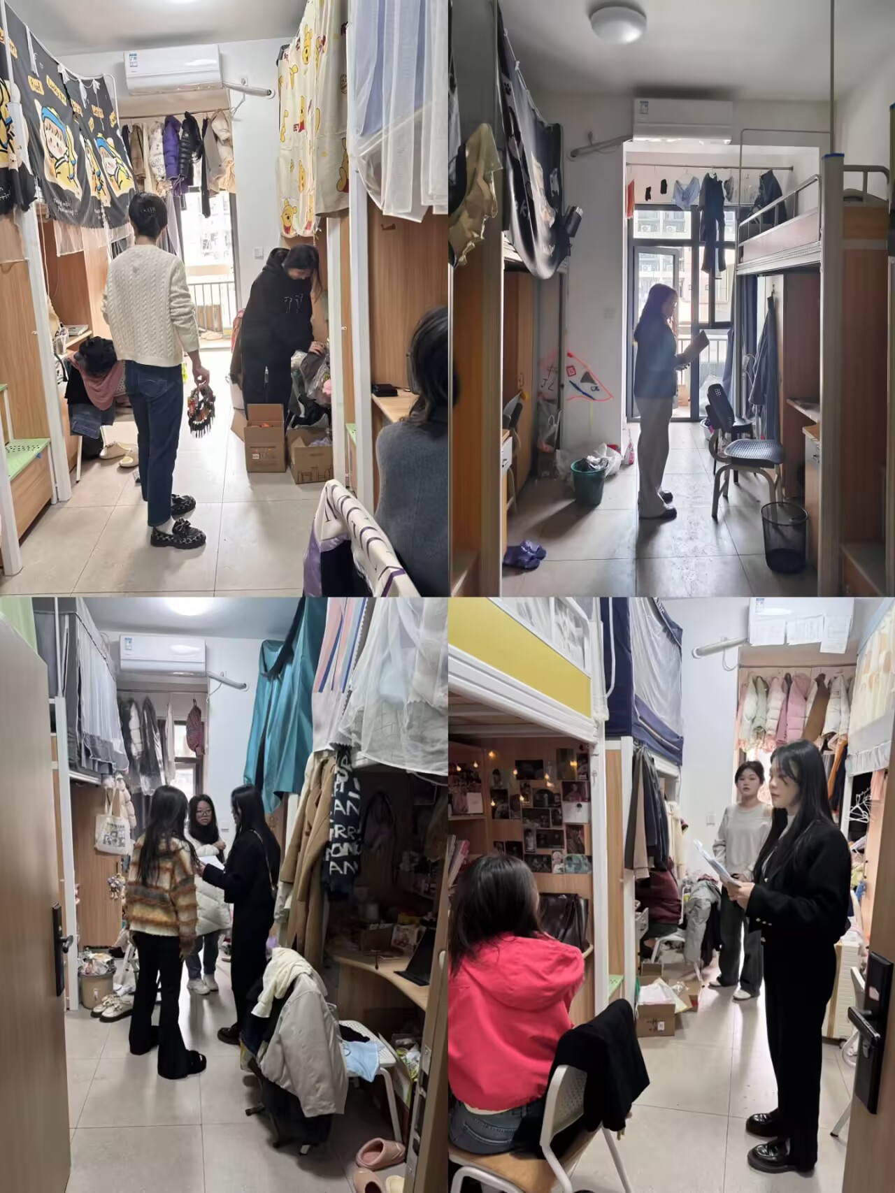 本次检查由各学院党总支副书记、辅导员及班主任组成专项检查组,深入本院学生宿舍开展“全覆盖、无死角”排查。检查重点涵盖违规电器使用、电源插座负载、阳台杂物堆积、离校前门窗关闭等情况,同步检查消防设施完好性及宿舍卫生环境。