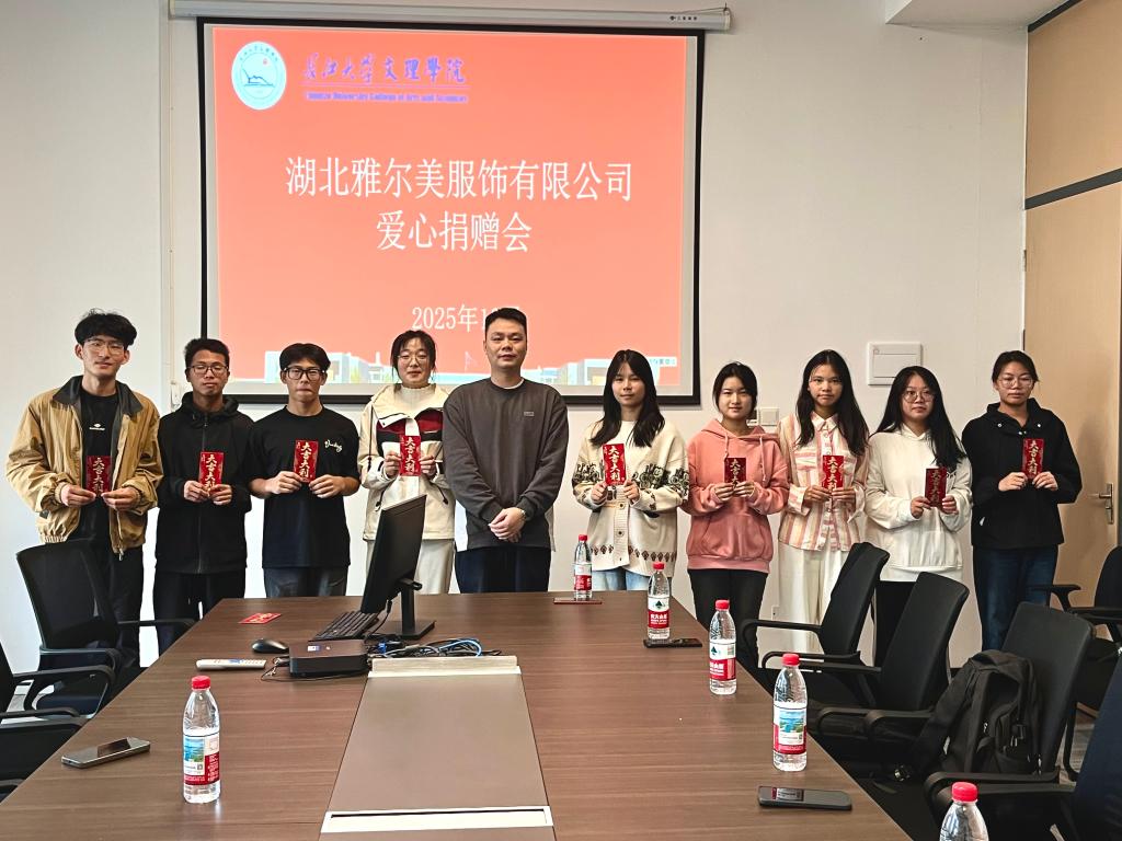 10月14日上午,学生工作部在图书馆104会议室组织开展了爱心捐助活动。湖北雅尔美服饰有限公司负责人黄龙以实际行动奉献一份爱心。活动由党委学生工作部副部长王琳主持。