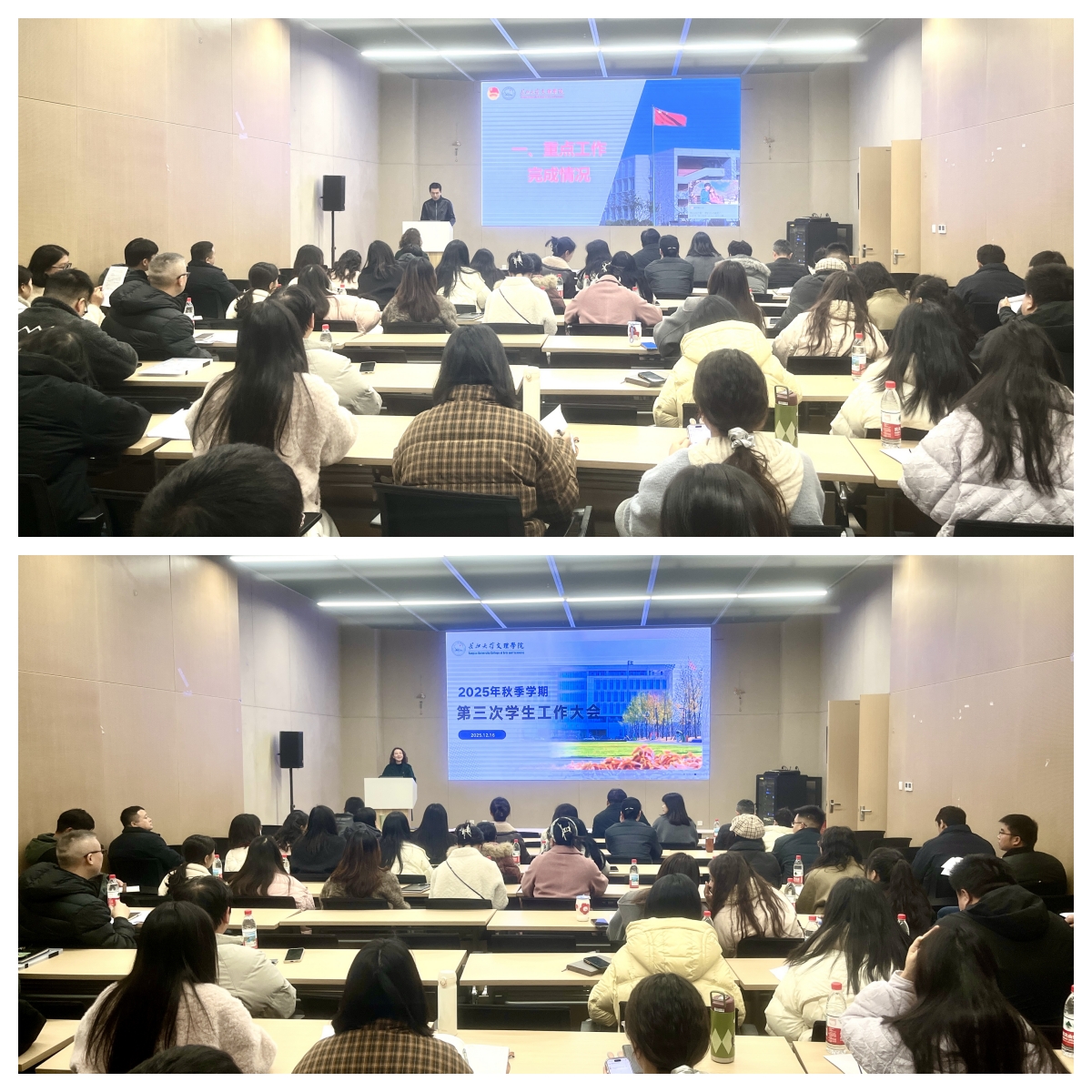 会上,团委书记陈海波用数据和图表汇报了重点工作完成情况,并布置了年终考核工作安排。李刚英从学生日常管理、心理健康工作、资助工作、学工队伍建设四个方面汇报了前期工作,并从八个方面部署了近期工作。