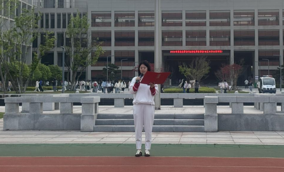 学生代表刘俊霞结合自身学习训练经历,分享成长感悟,表达了对体育事业的热爱,承诺将勤学善练、锤炼本领,以青春之力践行体育使命,不负时代与韶华。