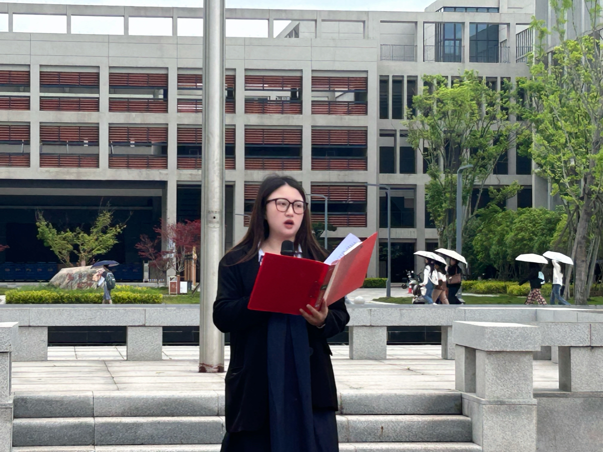 随后学生代表黄蕊馨以《以信仰为笔,以汗水为墨》为主题讲话。她从数学学科的逻辑思维出发,指出中国共产党的领导是国家发展最坚实的“公理”,是青年人生坐标中不可动摇的原点。她号召全体同学将个人的“小变量”融入国家发展的“大函数”中,以严谨的治学态度服务“十五五”建设,算好青春答卷,勇担时代使命。