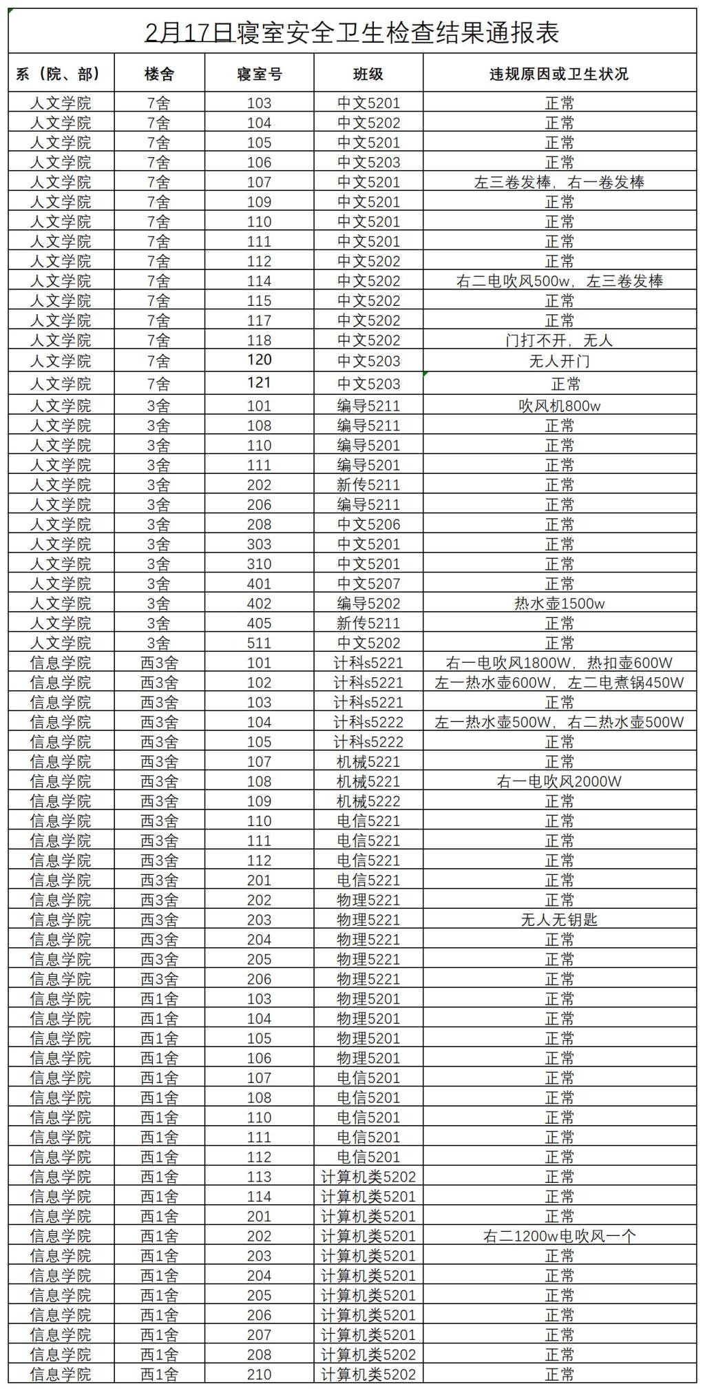 2022-2023学年第二学期第一周寝室安全卫生检查结果通报