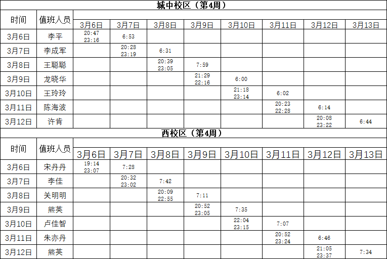 2022-2023学年第2学期第4周学工人员寝室值班通报