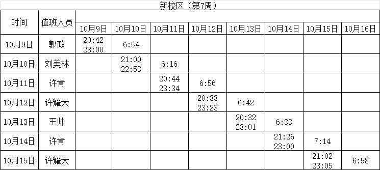 2023-2024学年第一学期第7-8周学工人员寝室值班通报