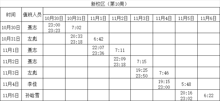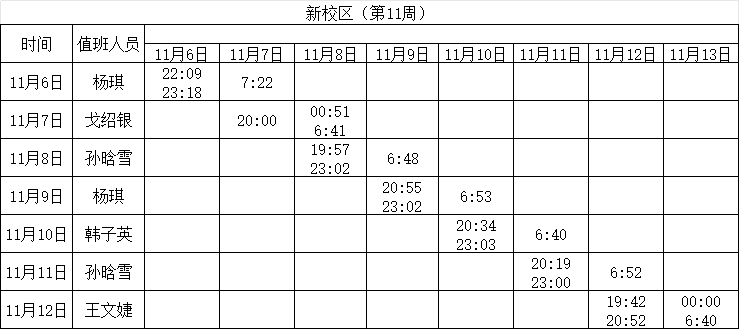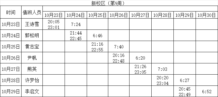 2023-2024学年第一学期第9-11周学工人员寝室值班通报