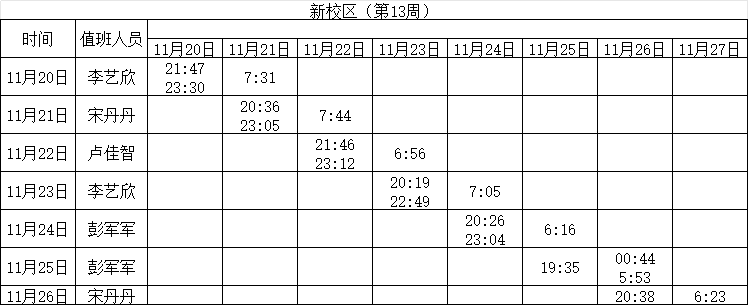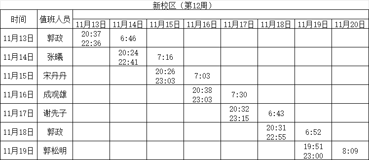 2023-2024学年第一学期第12-13周学工人员寝室值班通报