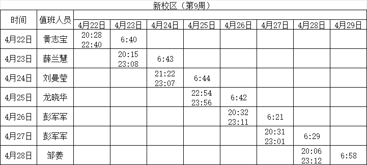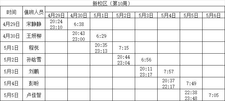 2023-2024学年第二学期第8-10周学工人员寝室值班通报