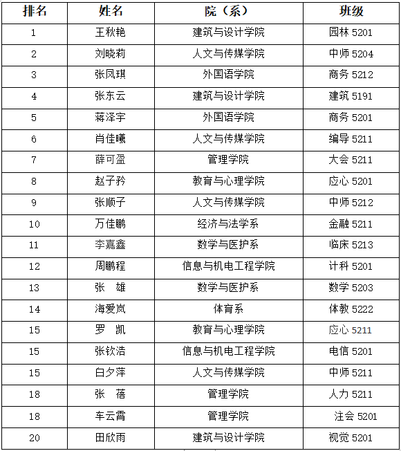 根据《yl7703永利集团“十佳大学生”评选办法》要求,经个人申请、各教学单位推荐、评审办公室审核,现将第九届“十佳大学生”候选人名单及候选人排名情况公示如下: