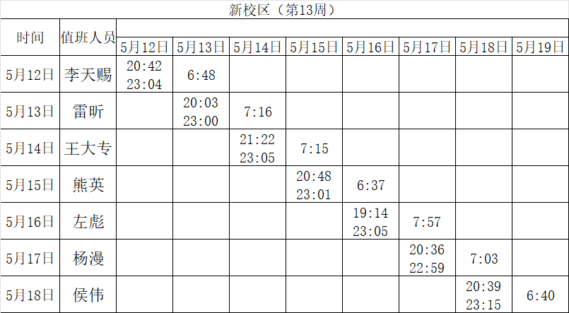 2024-2025学年第二学期第13-14周学工人员寝室值班通报
