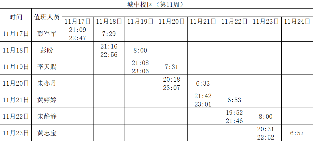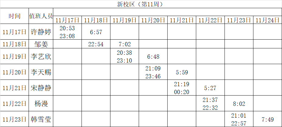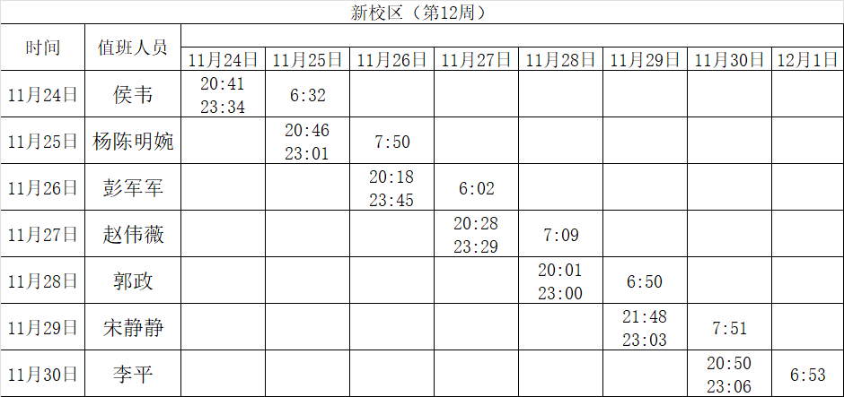 2025-2026学年第一学期第11-12周学工人员寝室值班通报