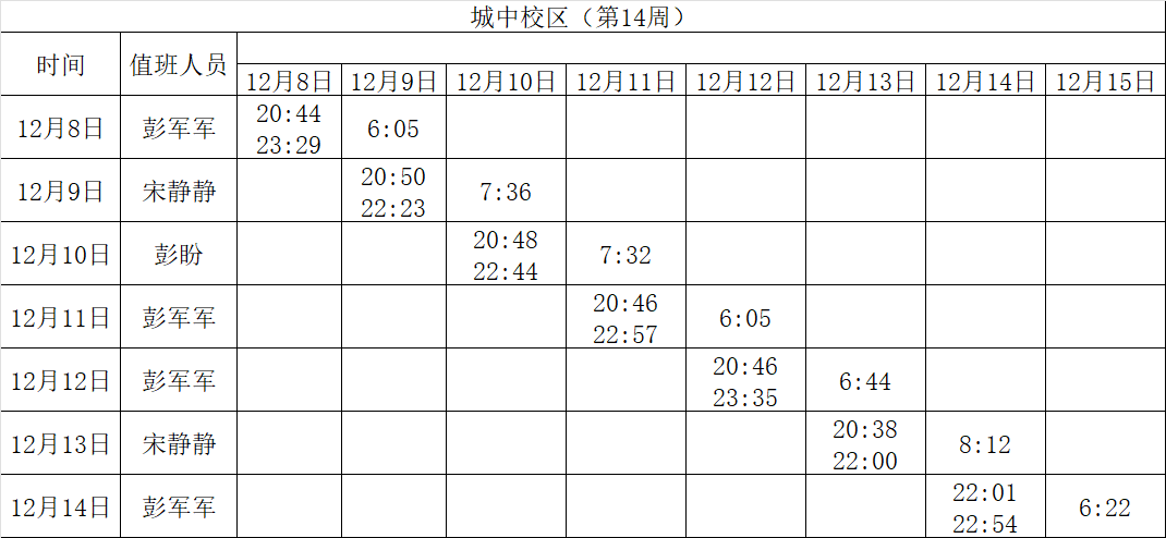 2025-2026学年第一学期第13-14周学工人员寝室值班通报
