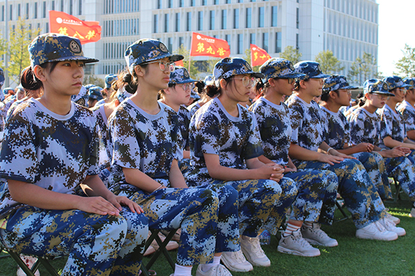 2024级新生组成18个军训连进行了成果展示,汇报了入校两周以来军事训练的成绩。