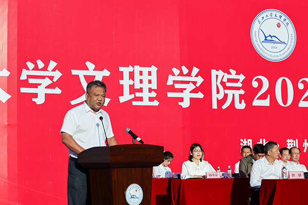 (记者 刘磊 通讯员 李刚英)黉门开启,文理同新。9月22日,yl7703永利集团2024级新生开学典礼在新校区举行。当天,学校换上喜庆新装,四处红旗招展,近3000名新生身着迷彩列队田径场。满目“中国红”“迷彩蓝”交相辉映,格外耀眼,装点着大学城的金秋,为荆州这座城市增添色彩,注入崭新的生机。