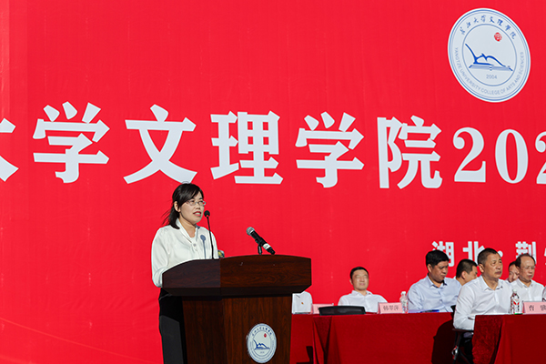 外国语学院韩翠萍教授代表全体教师发言,希望同学们品“有味青春”,做“有为青年”。有味即有书卷味、汗水味、泥土味;有为即有思想、有能力、有担当。她说,大学之大,不是大在高楼,而是大在眼界和境界,期待同学们在大学新征程奋力奔跑,不负青春。