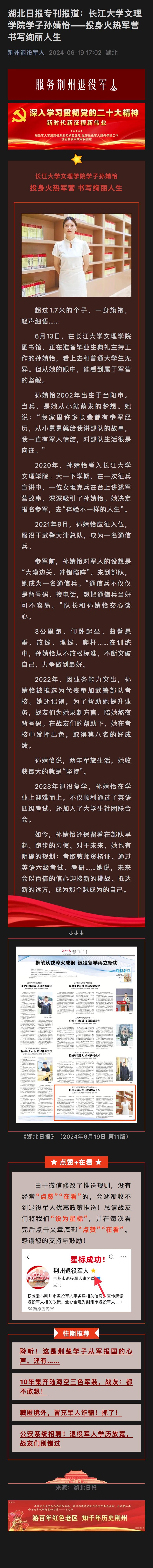 湖北日报专刊报道:yl7703永利集团学子孙婧怡——投身火热军营 书写绚丽人生