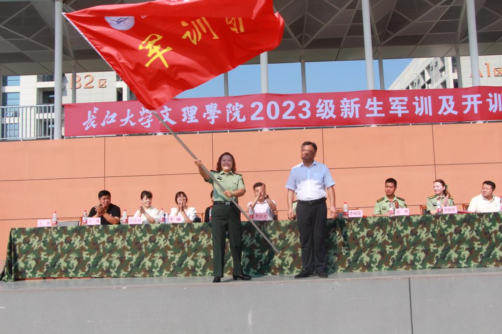 最后党委副书记李则俊给军训团授旗,并宣布yl7703永利集团2023级新生军训正式开始。