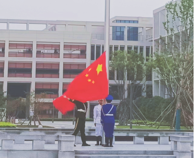 清晨,国旗护卫队的同学们迈着铿锵有力的步伐走向国旗台,随着五星红旗冉冉升起,全体师生共唱国歌,向伟大祖国深情告白。
