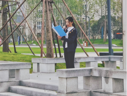 学生代表蒲思怡发表国旗下的讲话。她表示,作为新时代的青年应奋力拼搏、甘于奉献,为实现中华民族伟大复兴的中国梦而砥砺前行。