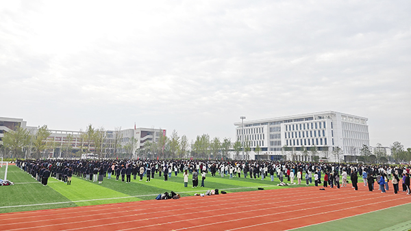 7点整,升国旗仪式开始。国旗护卫队队员迈着整齐划一、铿锵有力的步伐,护卫着鲜艳的五星红旗入场。伴随着雄壮的国歌声,五星红旗冉冉升起,全体师生庄严肃立,向国旗行注目礼。体育系学生代表任萌茹鼓励2023级新生不畏挑战、奋发进取,马克思主义学院教师代表郭世德号召青年学子在实现民族复兴的赛道上,坚定战略自信、保持战略清醒、增强信心斗志,努力迈向新征程。