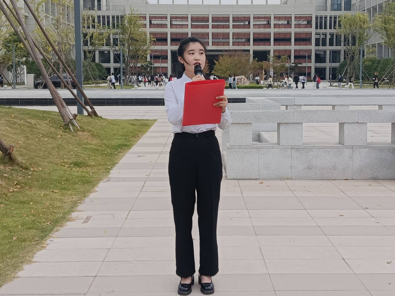 仪式结束后,学生代表周烁迎发言。她说,每份荣耀和精彩背后都有坚持和付出,每一次挑战都是历练和成长,要在青春赛道上不懈拼搏,收获真知,创造辉煌。