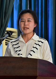 师生代表王玲玲(右)、杜玉慧发言