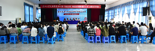 孙细望致开幕词。他说,“泮池五月风”科技文化节是激发广大学生讲科学、爱科学、学科学、用科学的品牌活动,心理文化节是我院心理健康教育工作的重要载体,开展好这两项活动,是贯彻落实习近平总书记在全国高校思想政治工作会议上重要讲话精神的具体体现,也是切实加强和改进大学生思想政治教育、提高大学生综合素质的实际行动。