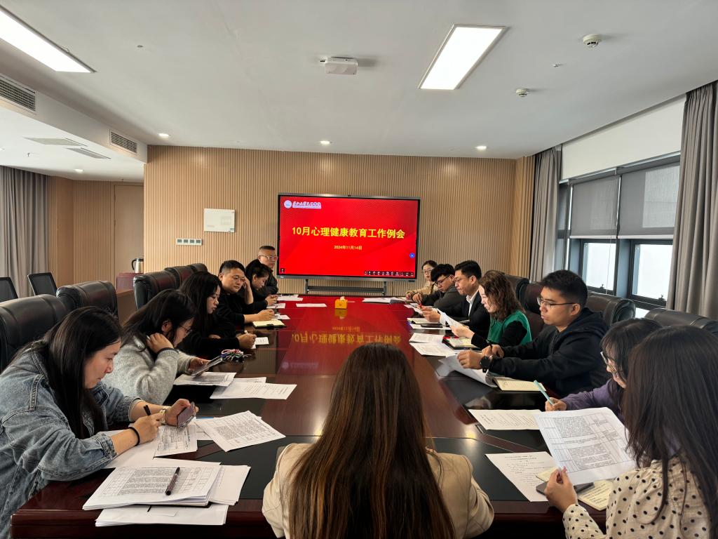 11月14日上午,在图书馆601会议室召开”两康一训“——10月份心理健康教育工作会议,总结近期工作,安排下一阶段相关工作。会议由学生工作部副部长成观雄主持。