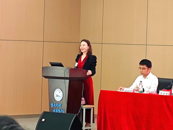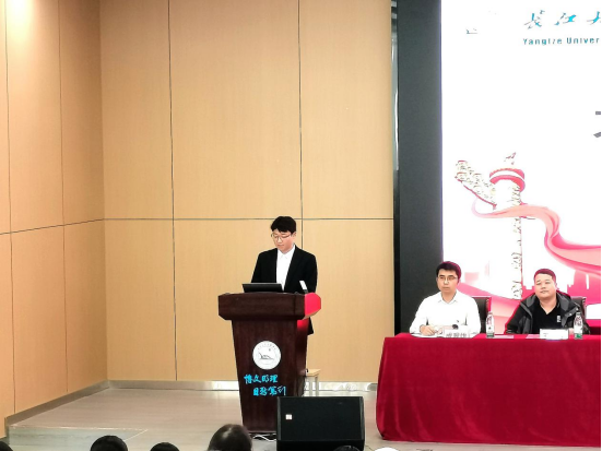 会议第三项议程,由党委学生工作部副部长王琳向第一届大学生自律委员会主席团代表授旗。