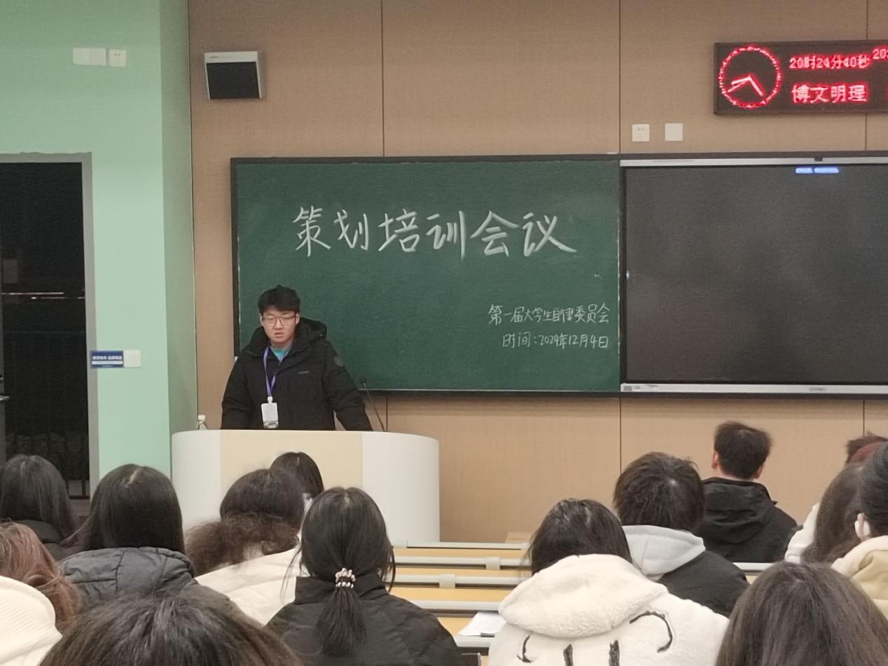 本网讯(通讯员:袁心雨)12月4日晚20:00,大学生自律委员会在教学楼A-108S召开了策划案培训会。本次会议由综合办公室张平同学担任主持人,信息与机电工程学院学生会主席王盛博学长担任主讲人,会议重点聚焦策划案撰写方法,同时对近期工作注意事项作了补充说明。
