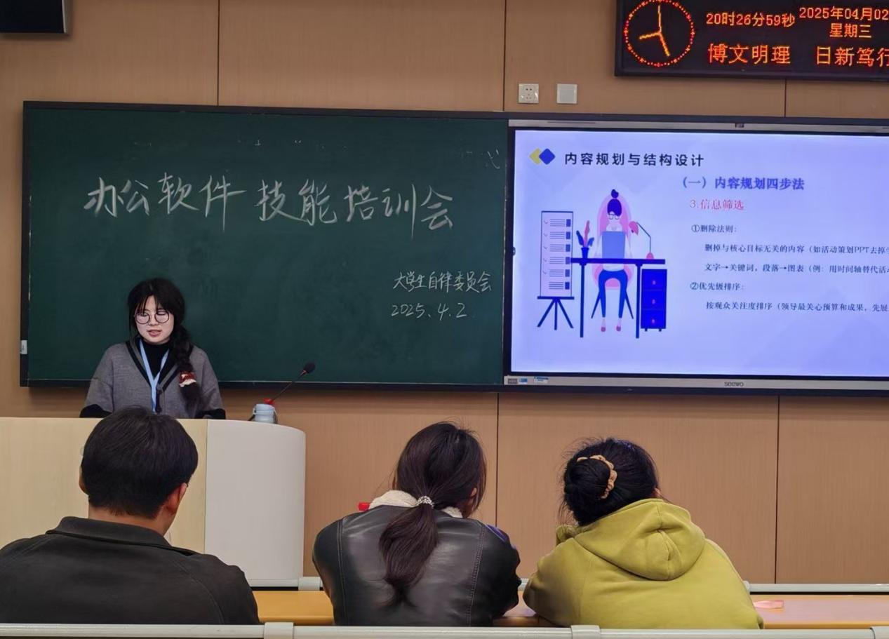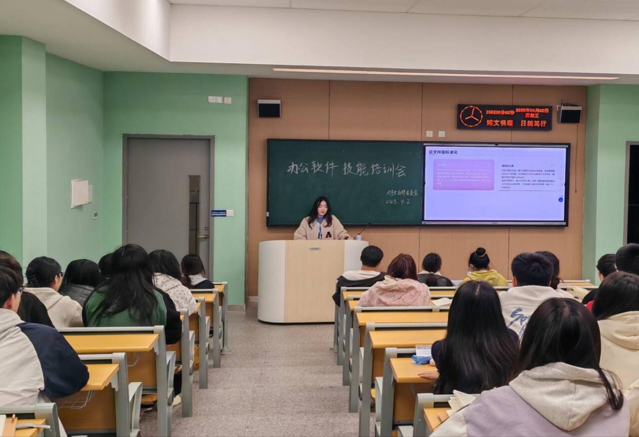 本网讯(通讯员:杨婷)大学生自律委员会于2025年4月2日在A-108教室成功举办“办公软件技能培训会”。本次会议聚焦办公软件的实用讲解与规范设计,大学生自律委员会全体成员参加本次会议。